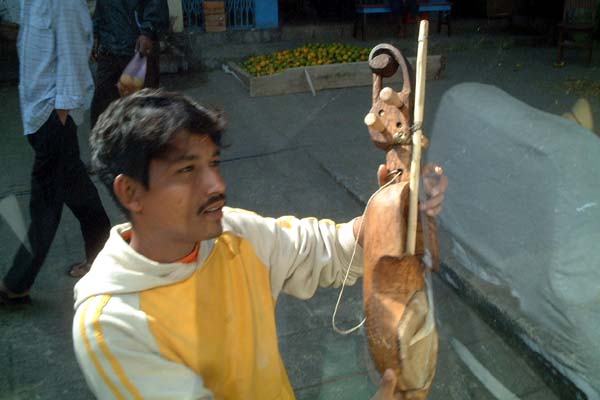 半路來到小城市,好多的水果攤,領隊下去買橘子,一個手拿傳統木琴的小販,在paddy的窗外唱起歌來,琴聲清脆真好聽,開3000RP後來降到2000,不過還是很貴,但真的好聽。與後來在波卡拉聽到的好聽很多,琴也比較大。應大家的要求,小陳還給了小費,不過小販聽說我要跟他照相,他竟說還要收錢,還是算了吧!不過之前就從車上偷照了一張。不過他的歌聲加上琴聲真的很不錯,唱的是lasnpilili(絲巾飄揚)。 之後的路上又買了小蕃茄,謝太太因為沒有停車買甘蔗而念了好久。 |