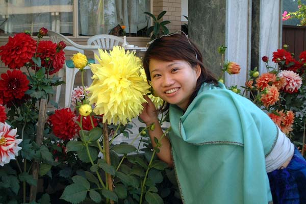 在加德滿都五星級的Hotel的早餐大廳裡,還看到人民用鮮花祭拜往生國王,國王及皇后的照片後面還擺了神像,令人感到奇怪不解。這樣的現象似乎到處可見。窗外的大里花開的比臉還大,鴿子也比台灣肥大,給人豐碩的錯覺。 |