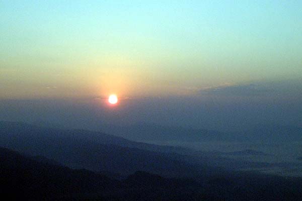 終於登上觀景台(H:1500m),不過今天雲層還是很厚,希望不大,可見遠方山中雲海,太陽還算賞臉的露了出來,算是有看到日出吧!