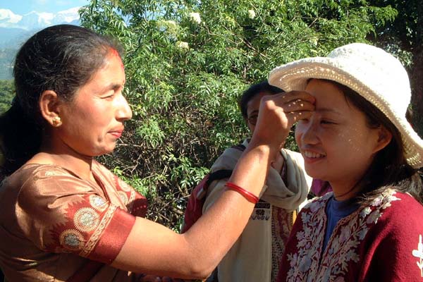 遇見也是來遊玩的Nepal人,不過一身印度人的打扮,還以為是印度遊客 ,請她幫我祈福點第卡,覺得好玩,另一個本來還不太願意跟我們合照,為了留地址弄了半天,最後還是拿出了她那台老canon,高興的與我及maggie四人合照。