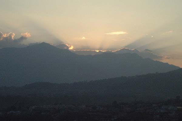 光線真是很神奇,見遠山夕陽西下,好似光芒萬丈,成了名副其實的光線。