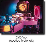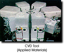 The CVD tools illustrated here are a special kind of multi-chamber CVD tool called a "cluster tool" that can perform multiple sequential operations automatically. |